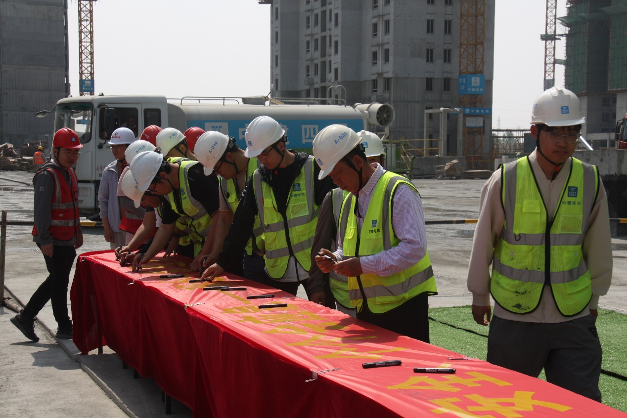 活動(dòng)現(xiàn)場(chǎng),集團(tuán)領(lǐng)導(dǎo)班子全體成員,各部門及子公司負(fù)責(zé)人,質(zhì)安部、工程部全體人員,各在建項(xiàng)目經(jīng)理、監(jiān)理及工人代表參加儀式。